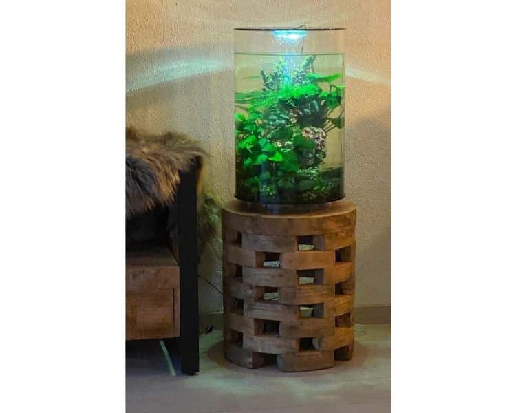 Deze mensen zochten een kastje om het aquarium op te zetten, uiteindelijk is het deze ronde bijzettafel geworden!