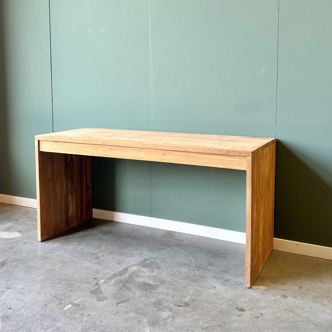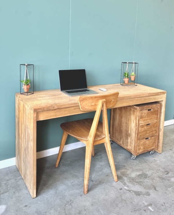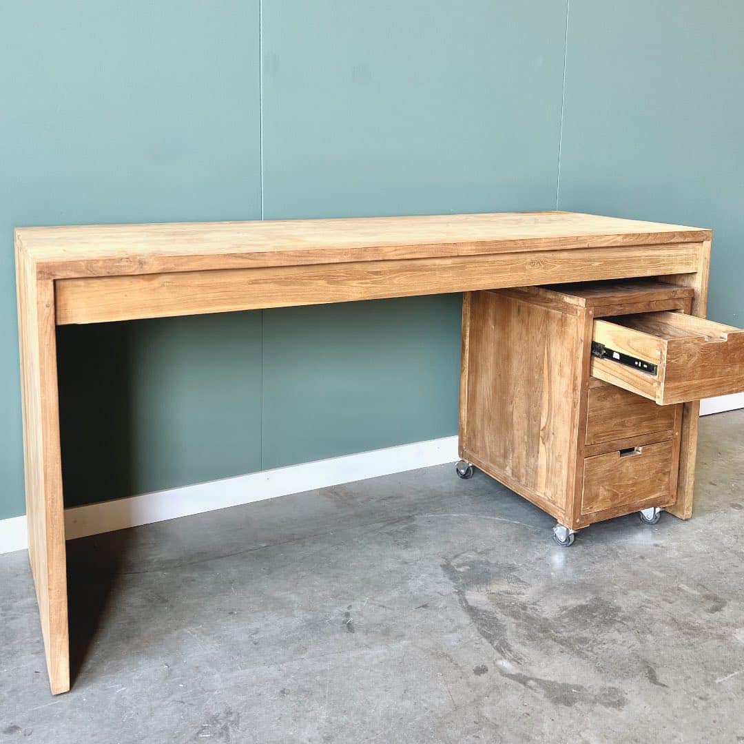 Upgrade je werkruimte met dit moderne bureau van gerecycled teakhout, FSC-gecertificeerd voor duurzame kwaliteit. Het strakke design past perfect in elk interieur, terwijl het bureau genoeg ruimte biedt voor al je werkbenodigdheden.