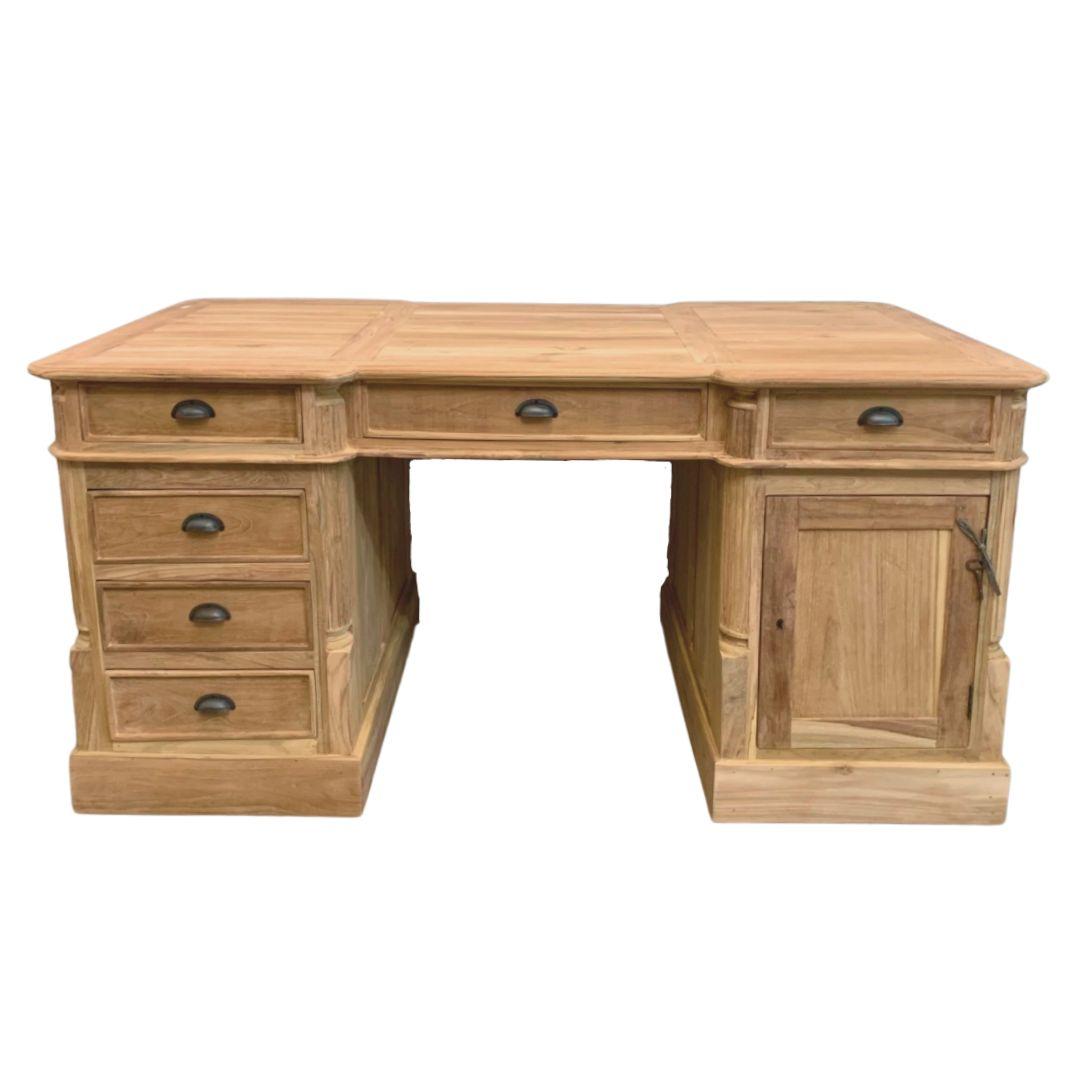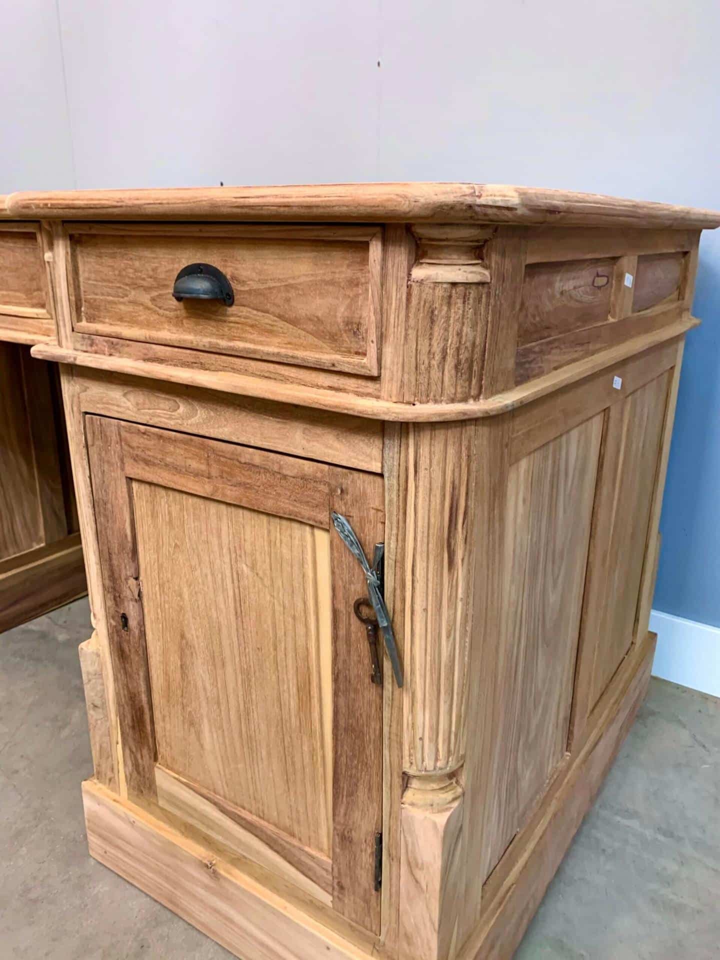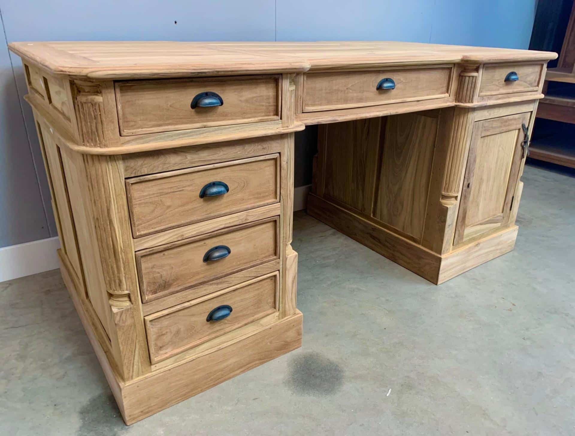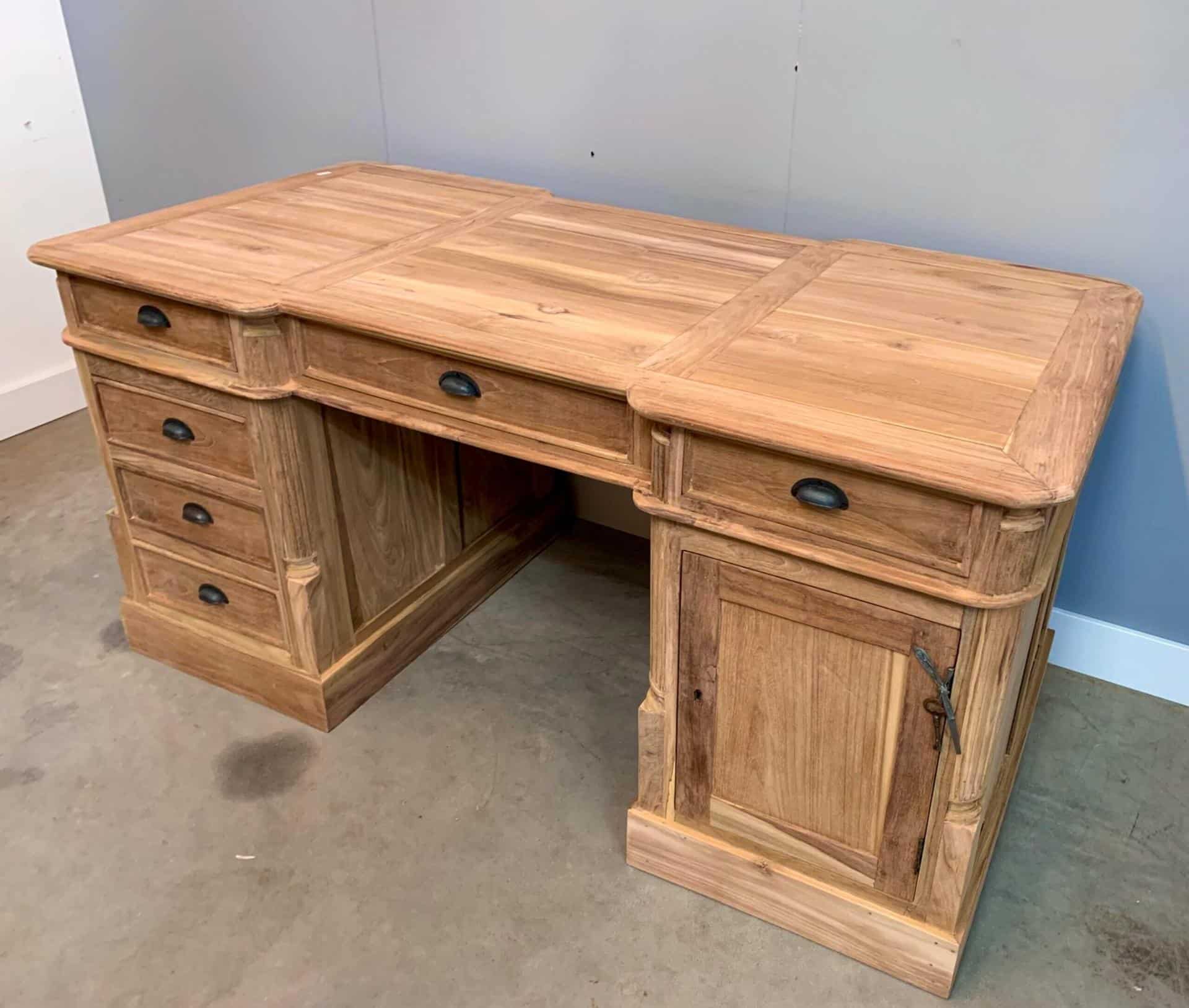 Stijlvol partner bureau van plantage teakhout. Een partner bureau kunt u gebruiken aan beide zijdes. Met een notarislampje maakt u de look helemaal compleet!