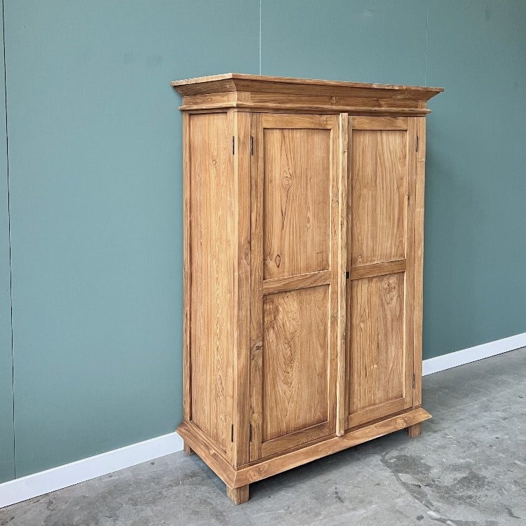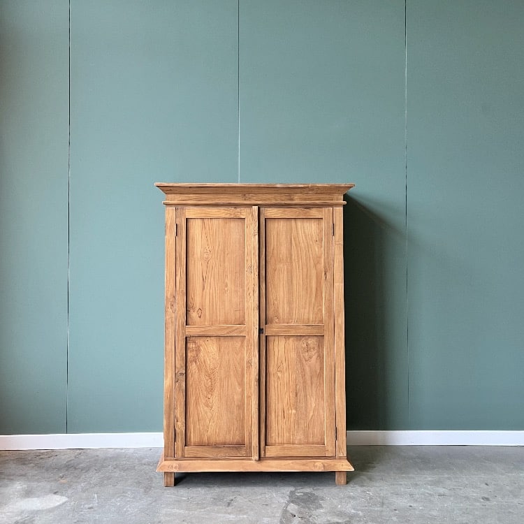 Gerecycled teakhout is afkomstig uit oude slooppanden. De panden worden gesloopt en het hout wordt verzameld en klaargemaakt voor hergebruik. Dit betekend dat spijkers verwijderd worden en oude verfresten worden eraf geschuurd. De gaatjes worden opgevuld en het hout is nu klaar voor verder gebruik. Soms kan het voorkomen dat er aan de binnenkant of achterkant van het meubel nog verfresten zitten. Dit zorgt er dus voor dat elk meubelstuk uniek is, ondanks dat het model wel het zelfde is. Verder is gerecycled teakhout beter voor het milieu. Er worden namelijk geen bomen gekapt. Daarnaast zal het hout minimaal gaan werken. Houd er rekening mee dat het een natuurlijk product is en er dus altijd kans is dat het wel zal gaan werken.