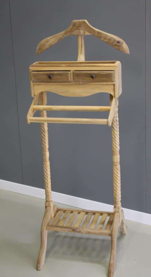 Decoratief meubelstukje voor in de slaapkamer / kleedkamer. Natuurlijk, je kunt je jasje op een stoel gooien maar het staat netter en leuker als je hem op deze dressboy hangt. En tenslotte is hij daar ook voor.