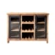 Wat een blikvanger! Dit dressoir heeft een vleugje retro, wat u terug vindt in de afgeronde hoeken en het ribbelglas. De metalen poten zorgen juist weer voor een eigentijdse uitstraling. Het teakhout is licht geborsteld wat het dressoir een natuurlijke uitstraling geeft. Achter de schuifdeuren vindt u 2 legplanken en 2 laden.