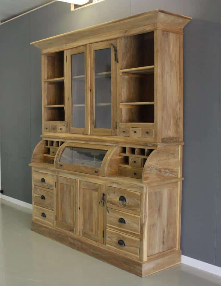 De grutterskast is een iconisch meubelstuk dat nostalgie en functionaliteit perfect combineert. Oorspronkelijk gebruikt in kruidenierswinkels, biedt deze kast een overvloed aan opbergruimte met meerdere vakken en laden, ideaal voor het organiseren van uw keukenspullen of andere benodigdheden. Gemaakt van hoogwaardig hout en vaak voorzien van glazen deuren, stelt de grutterskast u in staat om uw mooiste servies of decoratieve items tentoon te stellen. Voeg een vleugje authentieke charme en praktische opbergruimte toe aan uw interieur met een grutterskast. Perfect voor elke keuken of eetkamer. Alle kasten hebben een plank achter de deuren onderin.