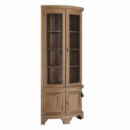 Met een hoogte van 200 cm en diepte van 57 cm biedt de kast voldoende opbergruimte voor servies, boeken of andere spullen. Het compacte hoekontwerp maakt hem ideaal voor gebruik in kleinere ruimtes, terwijl de houten deuren een klassieke en tijdloze uitstraling geven.