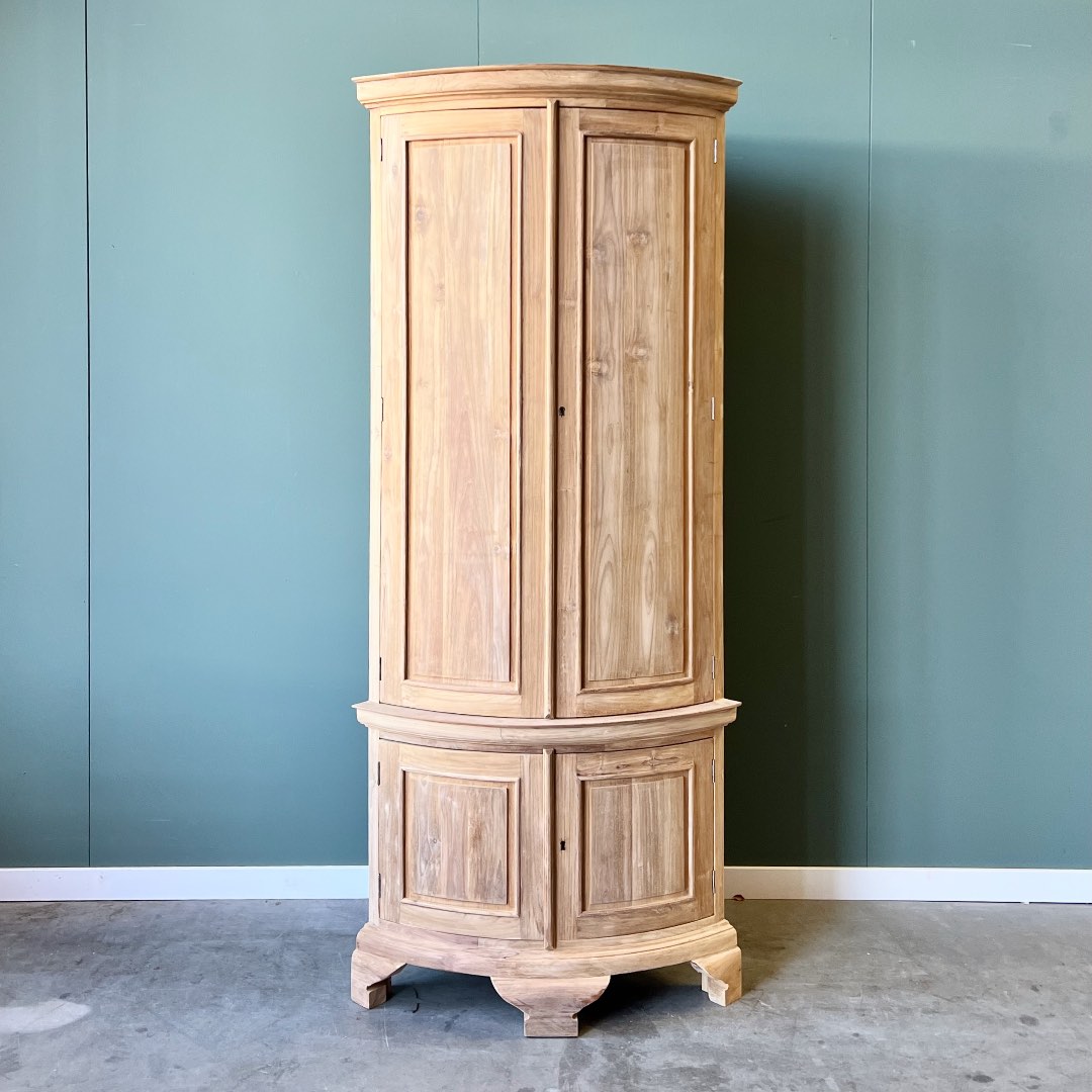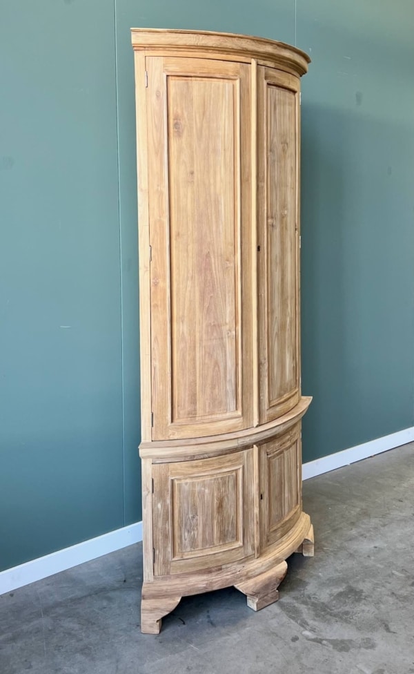 De Hoekkast Deventer met Houten Deuren is de perfecte oplossing om een onhandige hoek in uw huis om te toveren tot een stijlvolle blikvanger. Deze klassieke kast is vervaardigd uit hoogwaardige plantage teakhout, wat zorgt voor een warme en natuurlijke uitstraling die lang meegaat.