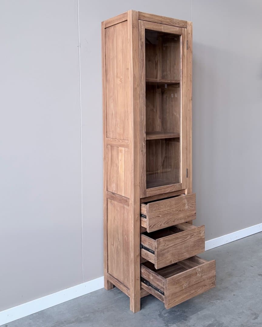 Gerecycled teakhout is afkomstig uit oude slooppanden. De panden worden gesloopt en het hout wordt verzameld en klaargemaakt voor hergebruik. Dit betekend dat spijkers verwijderd worden en oude verfresten worden eraf geschuurd. De gaatjes worden opgevuld en het hout is nu klaar voor verder gebruik. Soms kan het voorkomen dat er aan de binnenkant of achterkant van het meubel nog verfresten zitten. Dit zorgt er dus voor dat elk meubelstuk uniek is, ondanks dat het model wel het zelfde is. Verder is gerecycled teakhout beter voor het milieu. Er worden namelijk geen bomen gekapt. Daarnaast zal het hout minimaal gaan werken. Houd er rekening mee dat het een natuurlijk product is en er dus altijd kans is dat het wel zal gaan werken.
