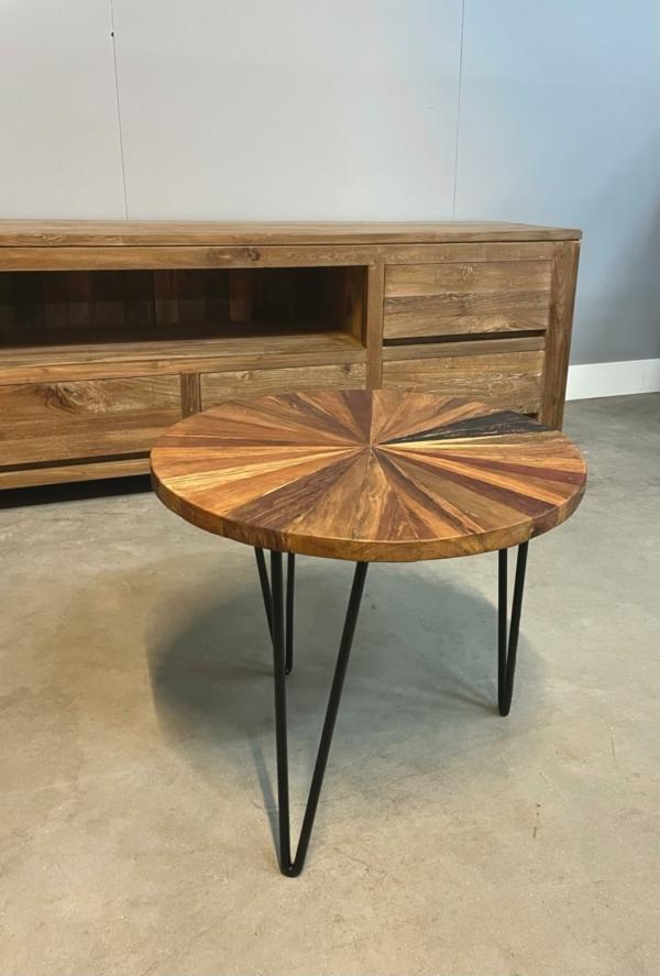 Gerecycled teakhout is afkomstig uit oude slooppanden. De panden worden gesloopt en het hout wordt verzameld en klaargemaakt voor hergebruik. Dit betekend dat spijkers verwijderd worden en oude verfresten worden eraf geschuurd. De gaatjes worden opgevuld en het hout is nu klaar voor verder gebruik. Soms kan het voorkomen dat er aan de binnenkant of achterkant van het meubel nog verfresten zitten. Dit zorgt er dus voor dat elk meubelstuk uniek is, ondanks dat het model wel het zelfde is. Verder is gerecycled teakhout beter voor het milieu. Er worden namelijk geen bomen gekapt. Daarnaast zal het hout minimaal gaan werken. Houd er rekening mee dat het een natuurlijk product is en er dus altijd kans is dat het wel zal gaan werken.