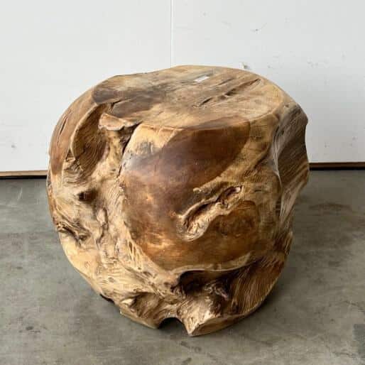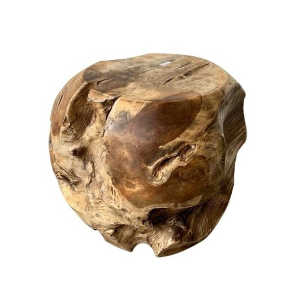 Ronde bijzet/plantentafel gemaakt uit een massief stuk teakhout.