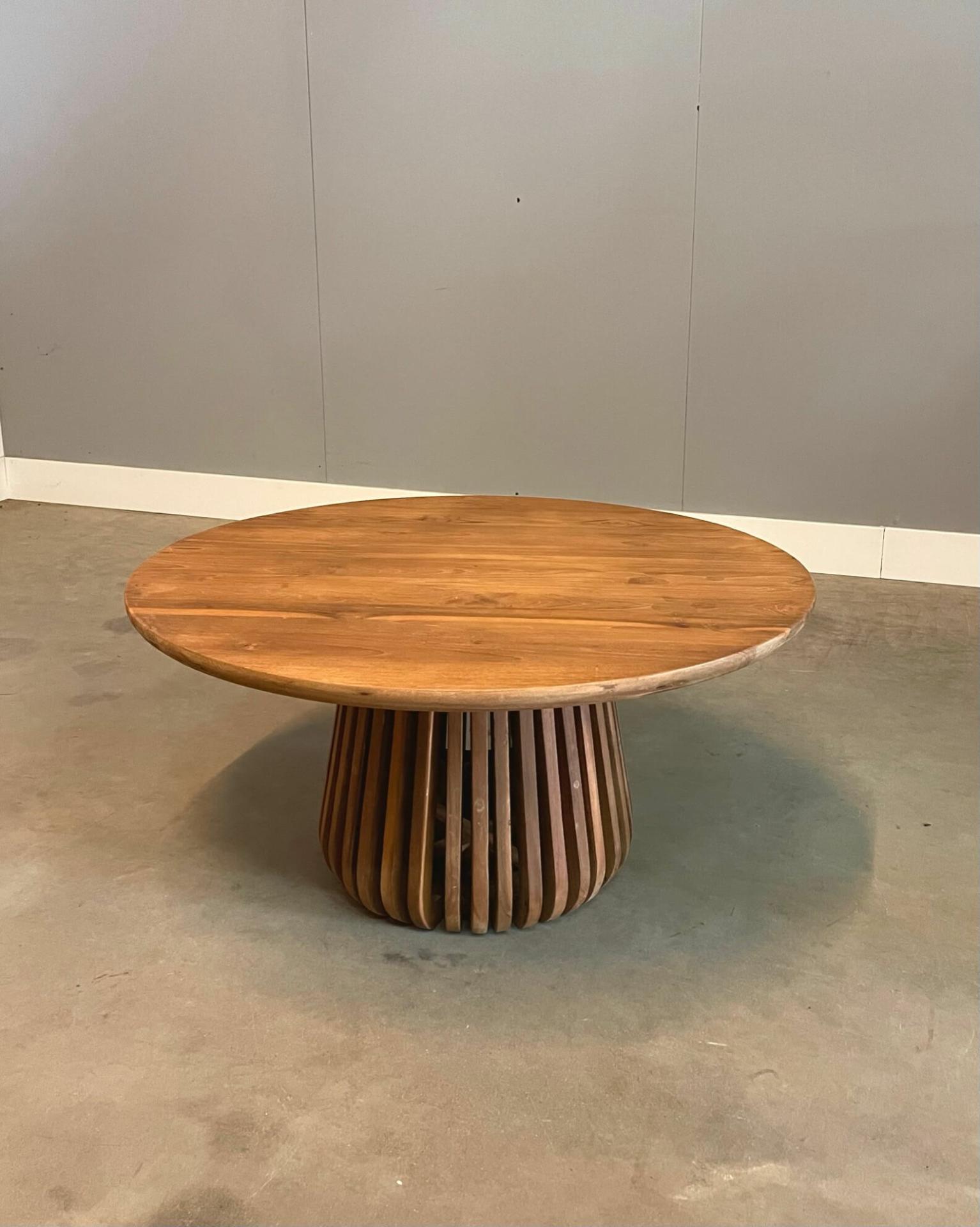 Wat een bijzondere salontafel, de tafel is gemaakt van uitstekende kwaliteit gerecycled teakhout.