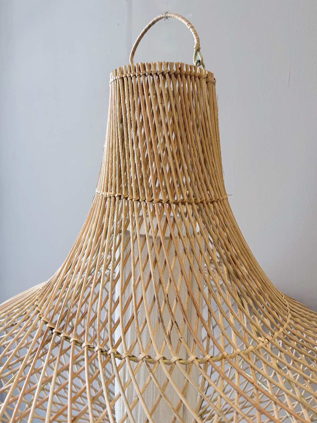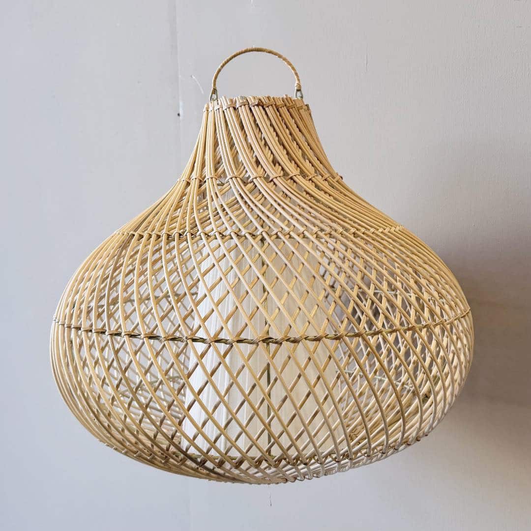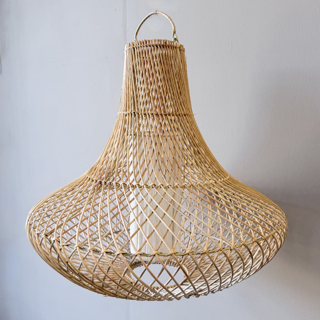 Breng warmte en natuurlijke uitstraling in je interieur met deze handgevlochten rotan hanglamp. De lamp is gemaakt van natuurlijk rotan en heeft een open vlechtstructuur waardoor het licht op een zachte en sfeervolle manier door de ruimte wordt verspreid. De organische vorm en het ambachtelijke vlechtwerk geven de lamp een rustige, warme uitstraling die perfect past in een bohemian, Scandinavisch of natuurlijk interieur.