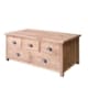 De salontafel is voorzien van vier ruime laden, die soepel openen en sluiten dankzij metalen rails. De landelijke komgrepen en de sierlijke plint geven de tafel een tijdloze, klassieke uitstraling. Ideaal voor het opbergen van afstandsbedieningen, tijdschriften of andere woonaccessoires, terwijl het blad vrij blijft voor decoratie.