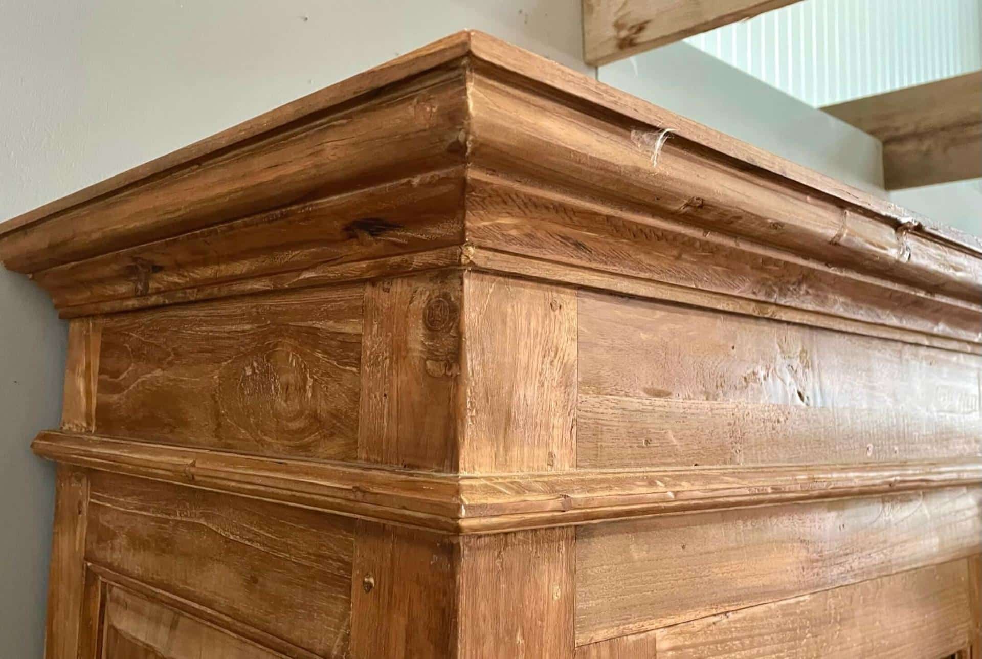 Het gerecyclede teakhout met dingklik afwerking onderhoud je eenvoudig met een vochtige doek. De robuuste afwerking maakt de kast praktisch en onderhoudsarm.