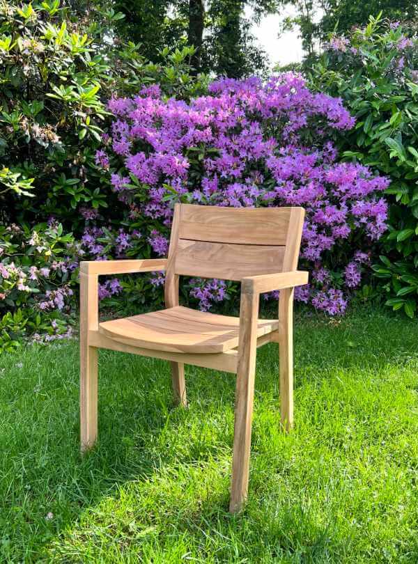 Deze stoel is een elegante toevoeging aan elke buitenruimte. Gemaakt van gerecycled teakhout, biedt deze stoel niet alleen comfort, maar ook duurzaamheid. Zijn stapelbaar ontwerp maakt het gemakkelijk om ruimte te besparen wanneer deze niet in gebruik is.