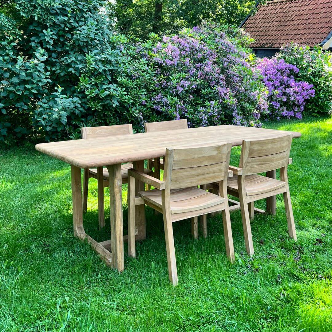 Wat jong teak bijzonder maakt, is de prachtige goudgele kleur en de rustige, egale uitstraling. Het hout heeft minder sporen van een vorig leven dan gerecycled teak en oogt daardoor strak en modern. Perfect voor wie houdt van een frisse, eigentijdse stijl. Voordat het hout verwerkt wordt, wordt het zorgvuldig geselecteerd en gedroogd. Dit helpt om de werking van het hout zoveel mogelijk te beperken en zorgt voor een stevig en duurzaam meubel.