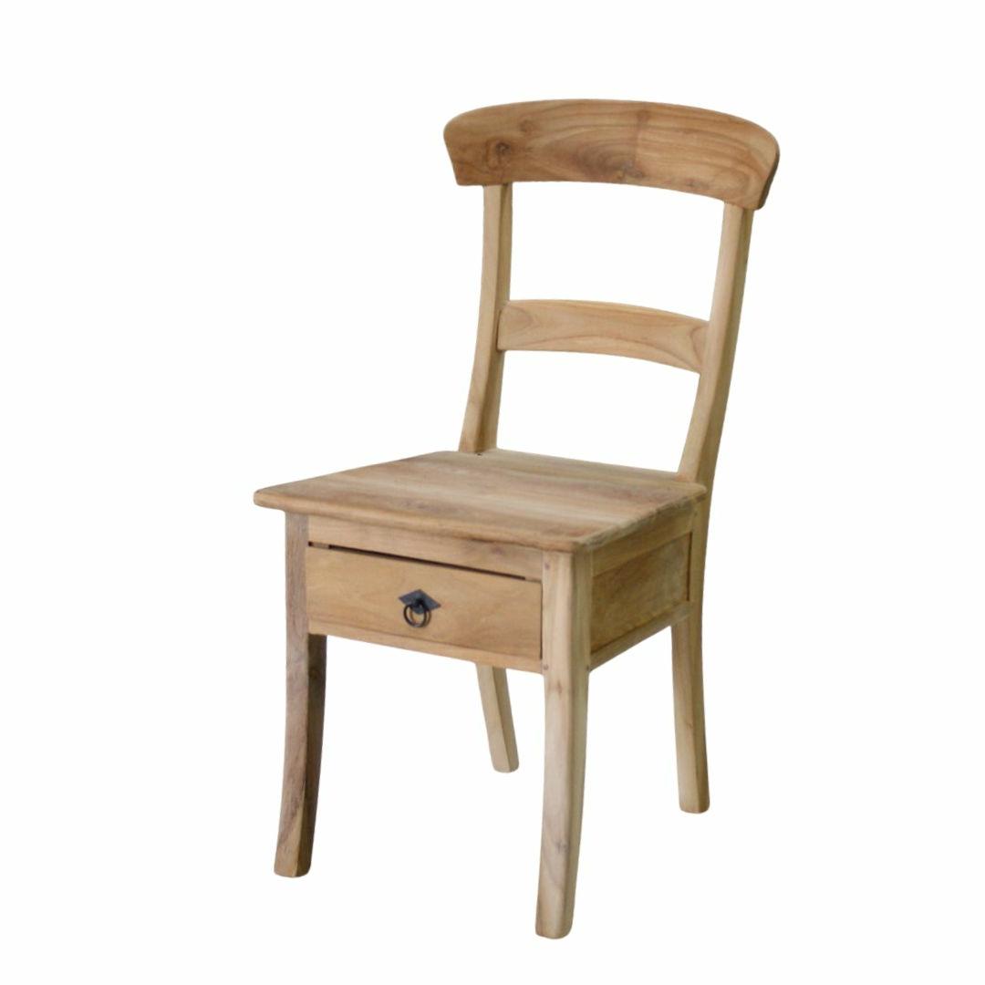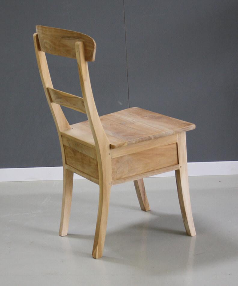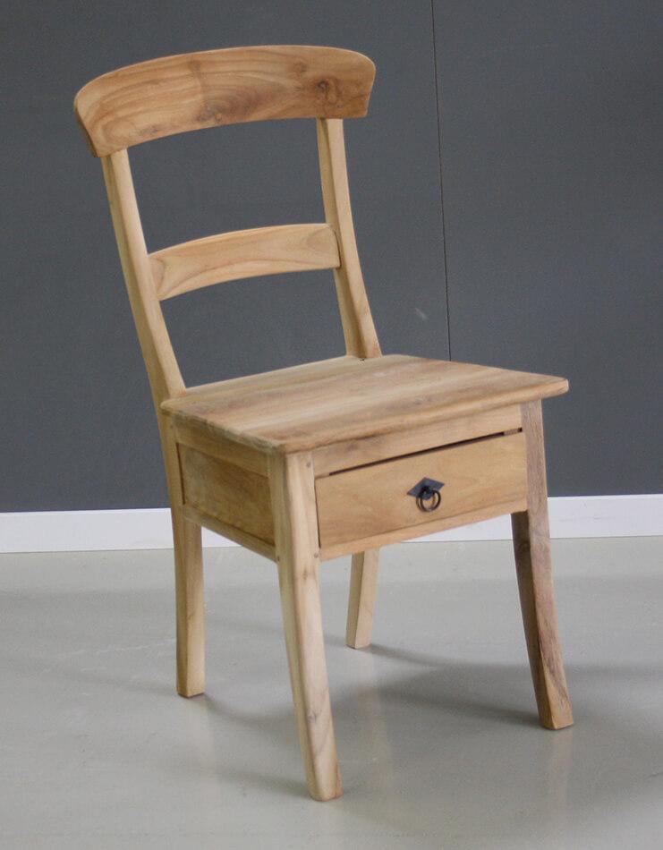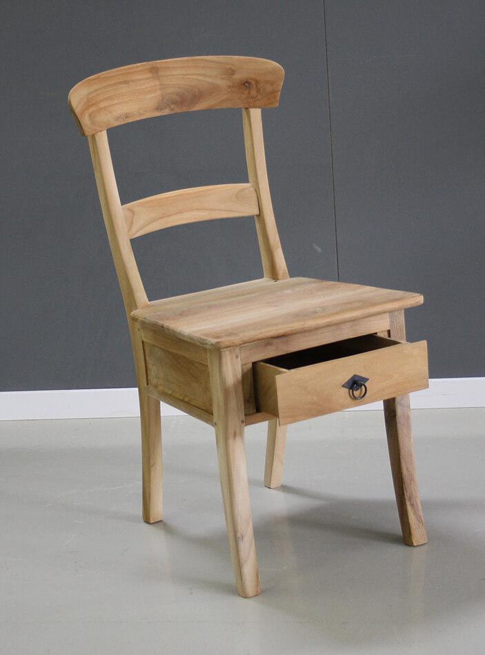 Teak stoel Addie met een lade onder de zitting.