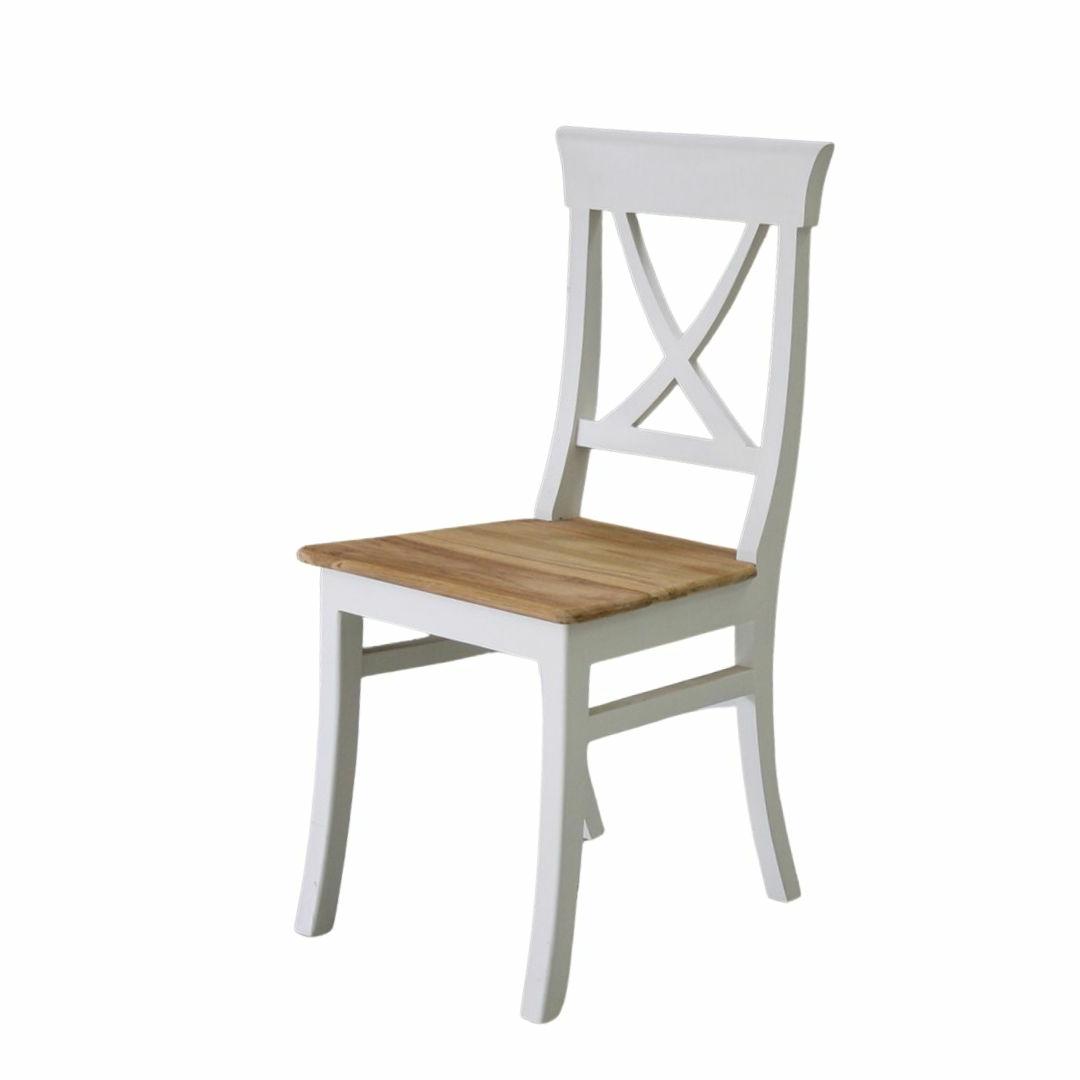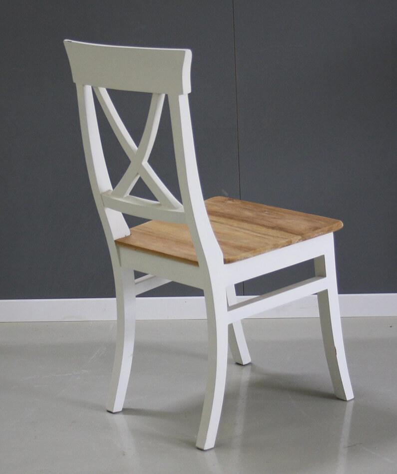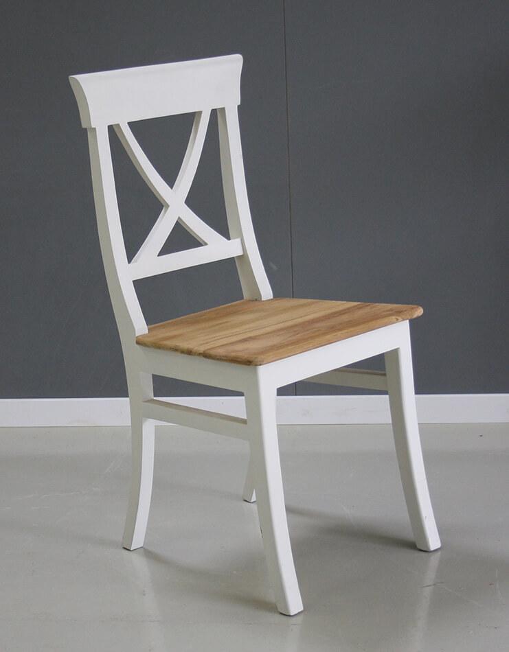 Fijn model stoel in het wit met teakhouten zitting.