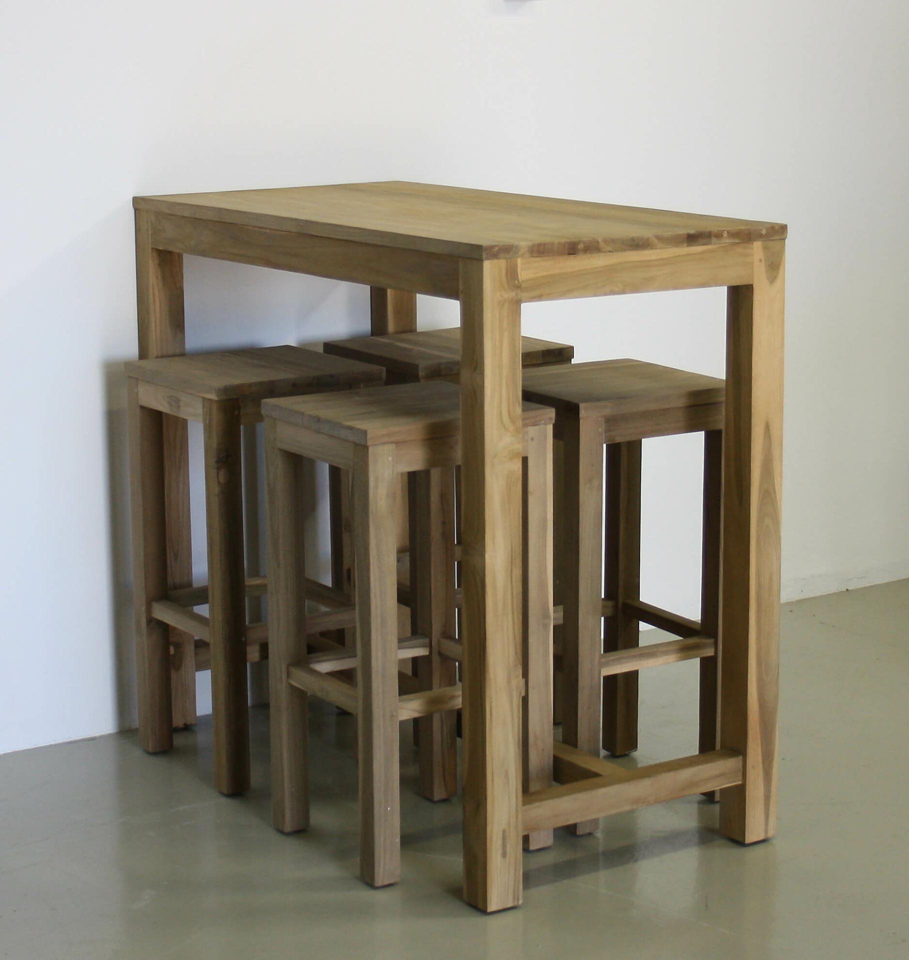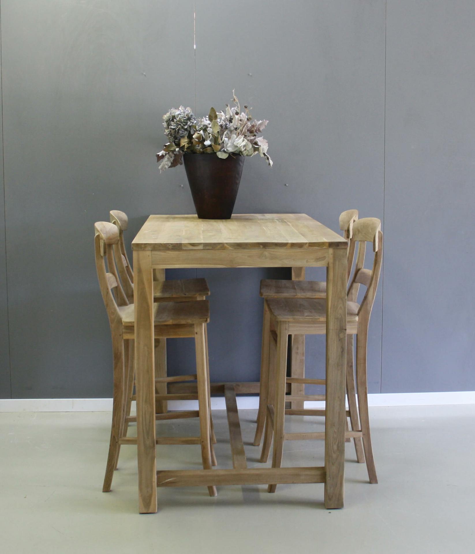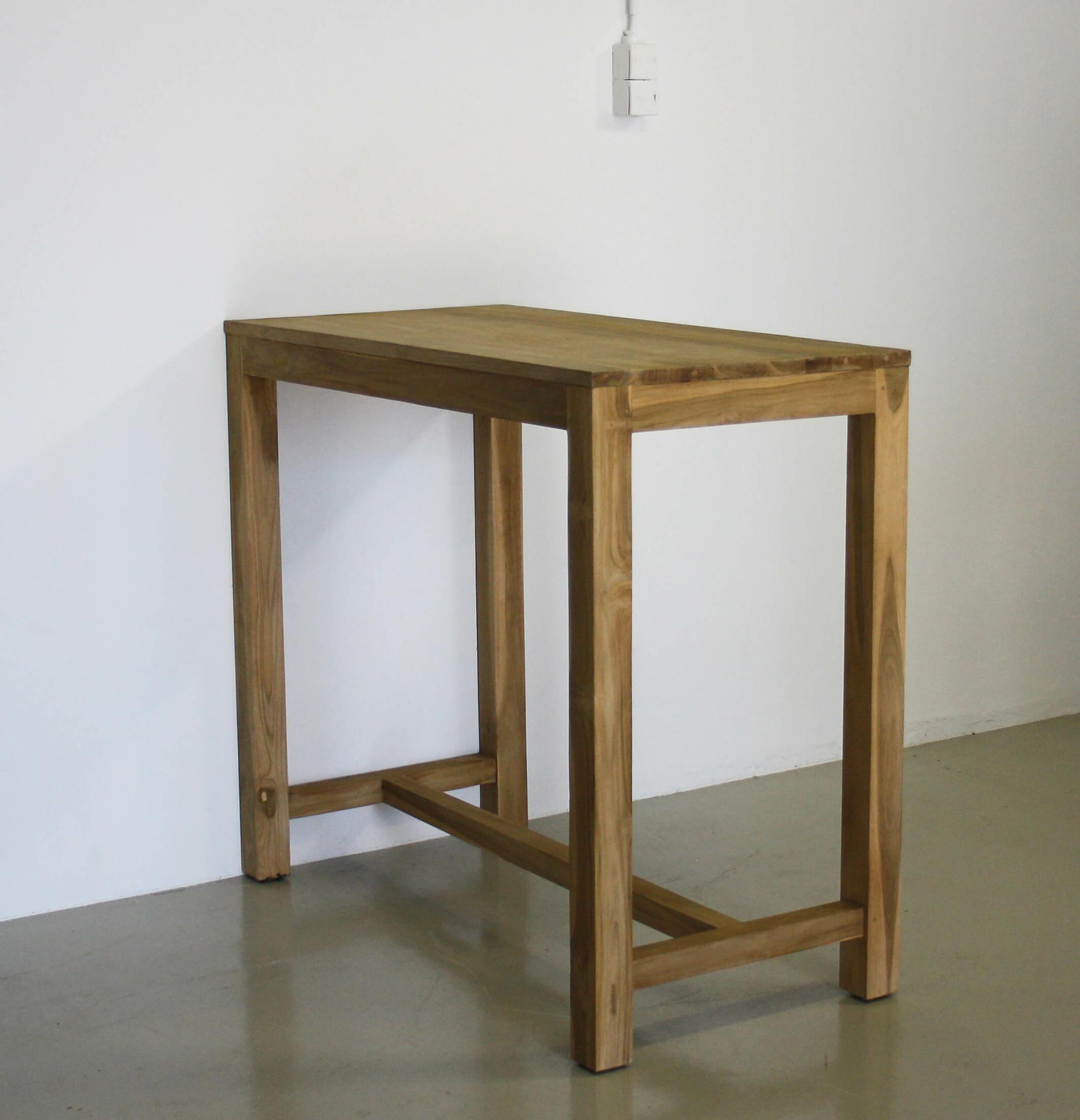 Rechthoekige bartafel van teakhout. De bartafels zijn 105cm hoog.