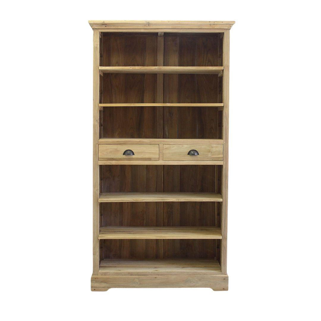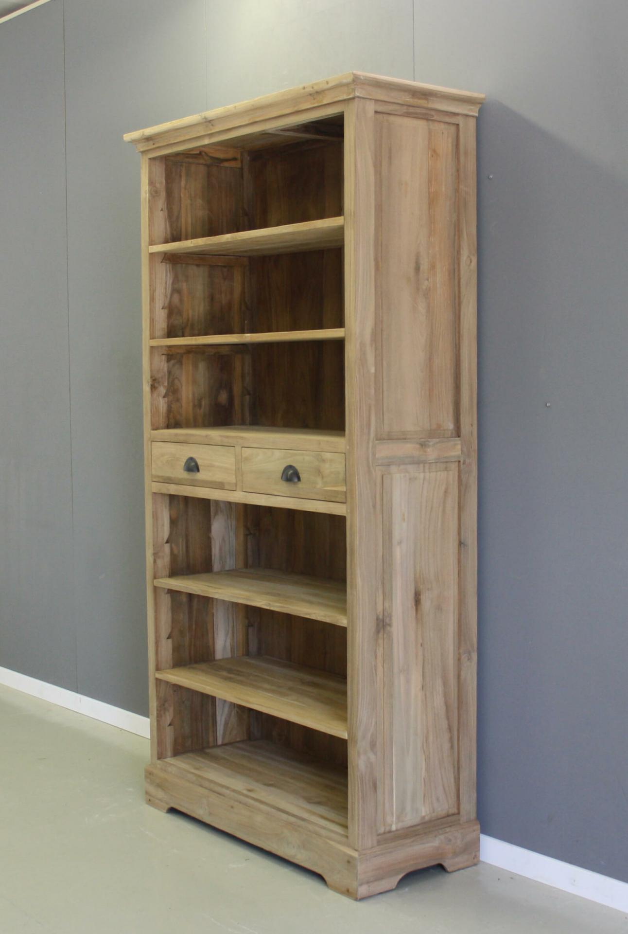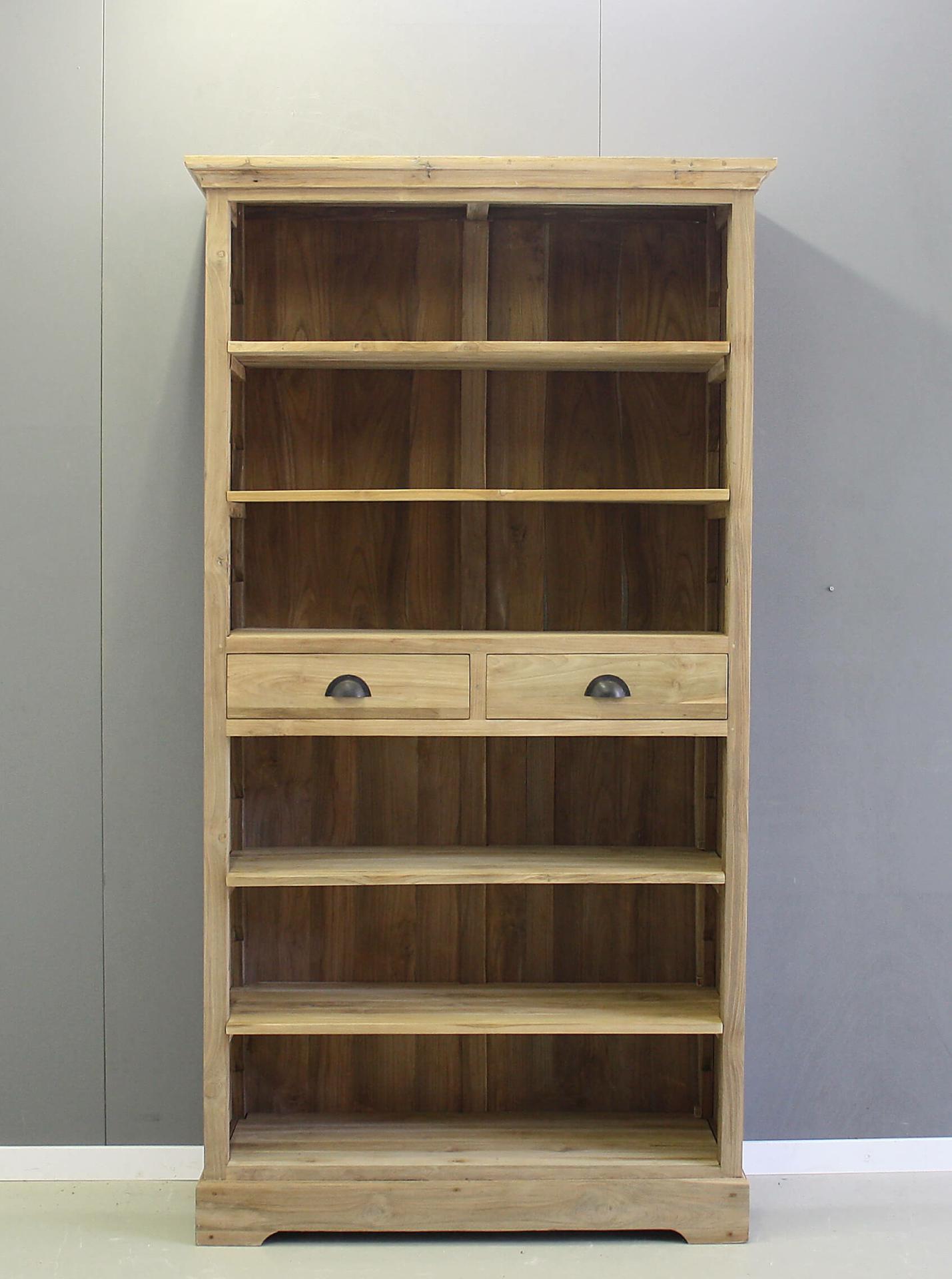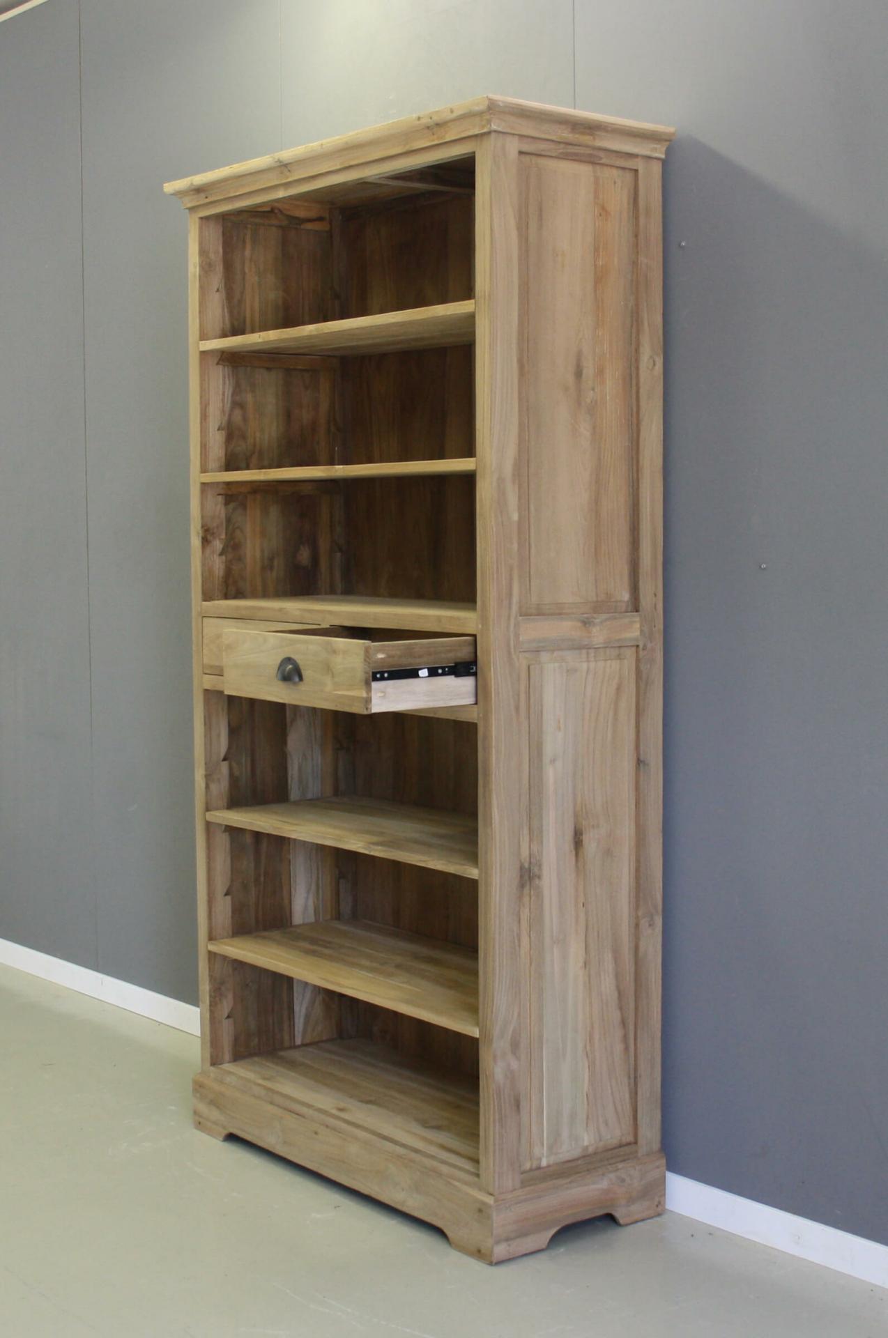 Fraai afgewerkte boekenkast van teakhout. Twee laden middenin. Schappen zijn verstelbaar.