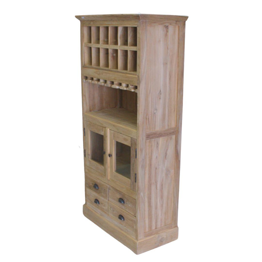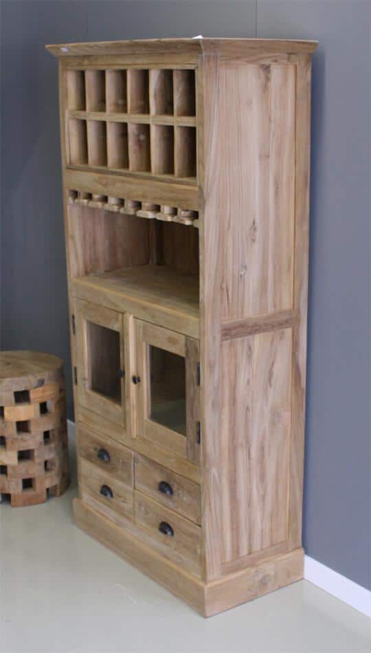 Drankenkastje van teakhout met plek voor 12 flessen wijn. Achter de deurtjes heeft u plek voor uw sterke drank collectie.