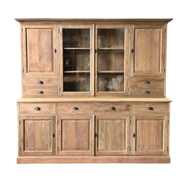 De kast heeft een rustige, natuurlijke teakkleur en past mooi in zowel moderne als klassieke interieurs. Elk exemplaar toont het unieke karakter van het gebruikte hout. Dankzij de stevige constructie en het gebruik van massief hout is dit meubelstuk gemaakt voor jarenlang gebruik.